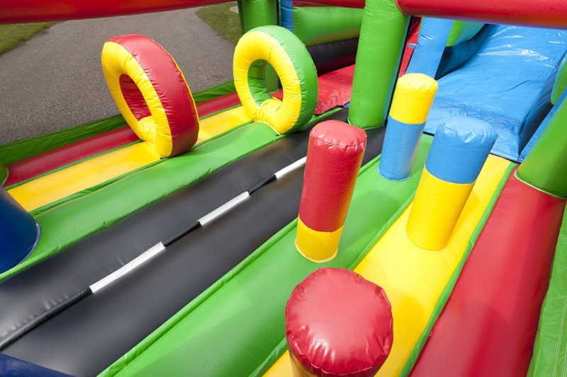 The inflatable Race Car Slide features a replaceable sliding and deck pads. The slide is super easy to clean, because it has several air outlets and a removable sheet. Furthermore, this inflatable slide hase no less than 8 anchoring points.